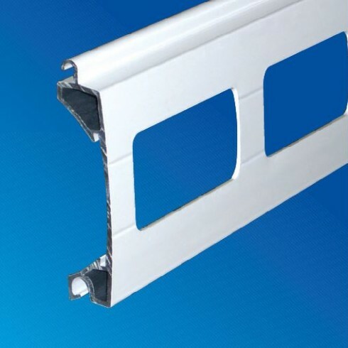 Смотровые или вентиляционные роллетные ворота схожи с классическими ламелями, но при этом имеют специальную перфорацию, через которую осуществляется вентиляция. Перфорация также выполняет роль смотрового окна с видом на улицу.